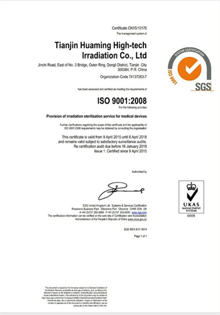 2015年華明輻照高科有限公司成功通過ISO9001及ISO13485國際認(rèn)證
