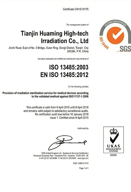 華明集團(tuán)下屬華明高科輻照有限公司近日成功通過ISO9001"質(zhì)量保證體系“及ISO13485”醫(yī)療器械質(zhì)量管理體系”國際認(rèn)證。將有資質(zhì)為更多優(yōu)秀的醫(yī)療器械生產(chǎn)廠家服務(wù)。