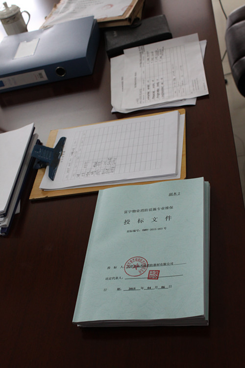 華明集團由行政部牽頭組織下屬企業(yè)(有容蒂康通訊、華明紙箱廠、米克威科技、華明印刷),在集團會議室召開了2015年度消防維保統(tǒng)一招標會。 佟潔總經(jīng)理在向企業(yè)介紹招標事項 統(tǒng)計投標文件 各單位負責人審閱投標文件