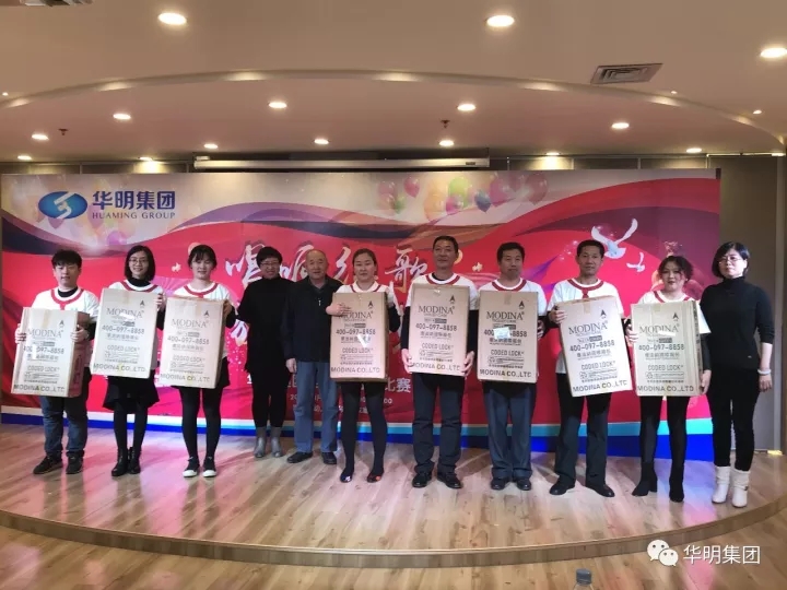 大賽經(jīng)過(guò)精彩的角逐,一等獎(jiǎng)由演唱《歌唱祖國(guó)》及《我的中國(guó)心》的華明永盛隊(duì)獲得,二等獎(jiǎng)由華明紙箱獲得,三等獎(jiǎng)同樣競(jìng)爭(zhēng)很激烈,集團(tuán)聯(lián)隊(duì)和凱通汽車(chē)隊(duì)分?jǐn)?shù)同樣為95.25分,經(jīng)過(guò)大賽規(guī)則,兩隊(duì)加唱一曲,并由評(píng)委打分,最終集團(tuán)聯(lián)隊(duì)以95.5分獲得第三名。