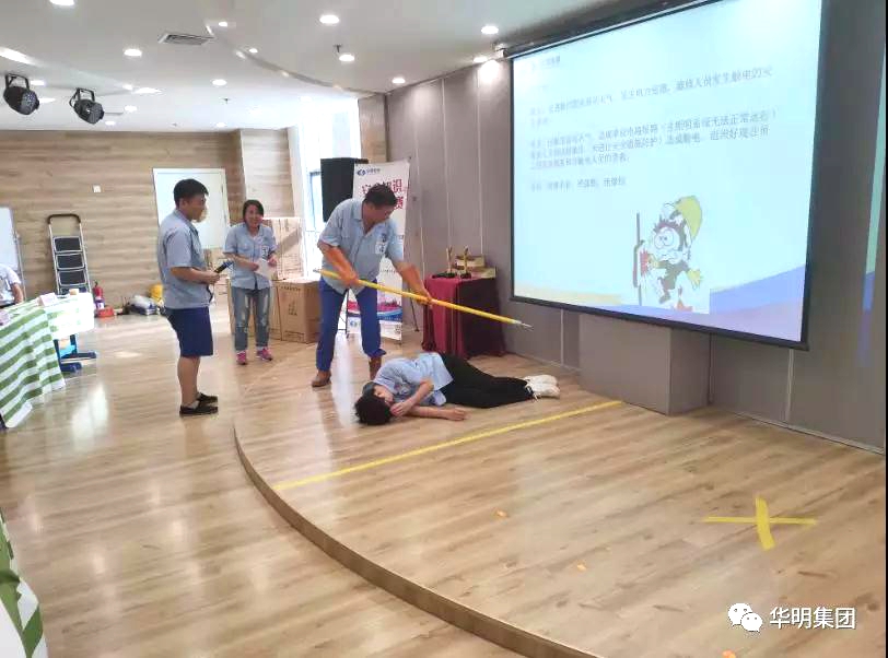 此次競賽的亮點是增加了內(nèi)容豐富、生動且不失教育意義的安全主題情景劇表演。其中表演最為突出的三支隊伍:凱通代表隊!他們表演的題目是:對易爆危險品保管不當(dāng),發(fā)生爆炸火災(zāi),有人員受傷的應(yīng)急處理。有容代表隊!他們表演題目是:高空作業(yè)人員沒有佩戴安全繩,造成高空墜落受傷。米克威代表隊!他們的表演題目是:有維修人員違規(guī)作業(yè)造成觸電。他們表演風(fēng)趣生動,幽默而不失嚴(yán)肅,將安全隱患及帶來的危害表演的淋漓盡致。讓在場的觀眾在哄堂大笑中受到了啟發(fā)和教育。尤其凱通4S店代表隊,憑借深厚的舞臺表演功底,征服了評委和現(xiàn)場觀眾,獲得將近滿分的傲人成績。