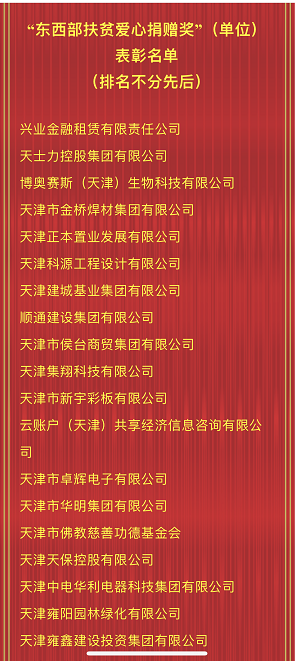 佟潔總經(jīng)理參加了此次表彰大會。華明集團(tuán)榮獲了“東西部扶貧愛心捐贈獎”的榮譽(yù)稱號。華明集團(tuán)在天津發(fā)展的39年來,將產(chǎn)業(yè)發(fā)展和慈善公益事業(yè)逐漸融合為一個有機(jī)體,以“四海同心”為精神攜領(lǐng),以“傳承和光大中華民族傳統(tǒng)美德”為己任,秉承“取之社會,用之社會”的公益理念,長期支持公益事業(yè)建設(shè),逐漸形成以捐建希望小學(xué)暨發(fā)起希望教師工程、參與慈善萬人行、支持華文教育、推動參與精準(zhǔn)扶貧工作等為主體的慈善公益體系項目,捐資總額近400元。