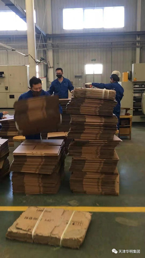 上班人員全部為本地未離津人員,且體溫正常、身體狀況良好。截止到2月5日,華明紙箱廠為天津施特雷生物科技有限公司生產(chǎn)特莫森包裝紙箱和次氯酸鈉包裝紙箱10萬個(gè),為天津市化學(xué)試劑研究所生產(chǎn)包裝箱16萬個(gè),天士力醫(yī)藥集團(tuán)生產(chǎn)5.5萬個(gè),北京諾華制藥生產(chǎn)5.6.萬個(gè),瑞普(天津)生物藥業(yè)有限公司生產(chǎn)2.6萬個(gè),為廣州寶潔生產(chǎn)洗手液包裝箱15萬個(gè)。全力服務(wù)疫情防控物資生產(chǎn)單位。車間里忙碌的工人和隆隆的機(jī)器聲都在和這場疫情賽跑。眾志成城,共克時(shí)艱,抗擊疫情華明集團(tuán)在行動(dòng)!