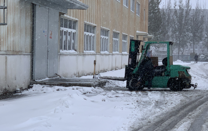 兩個生產(chǎn)區(qū)域,雖然只間隔不足百米,但厚厚的積雪將這百米路程變的無比艱難與漫長,叉車通行受阻。周邊的員工、辦公室后勤人員、范柏青總經(jīng)理紛紛拿起工具去清理道路以確保叉車安全通行。