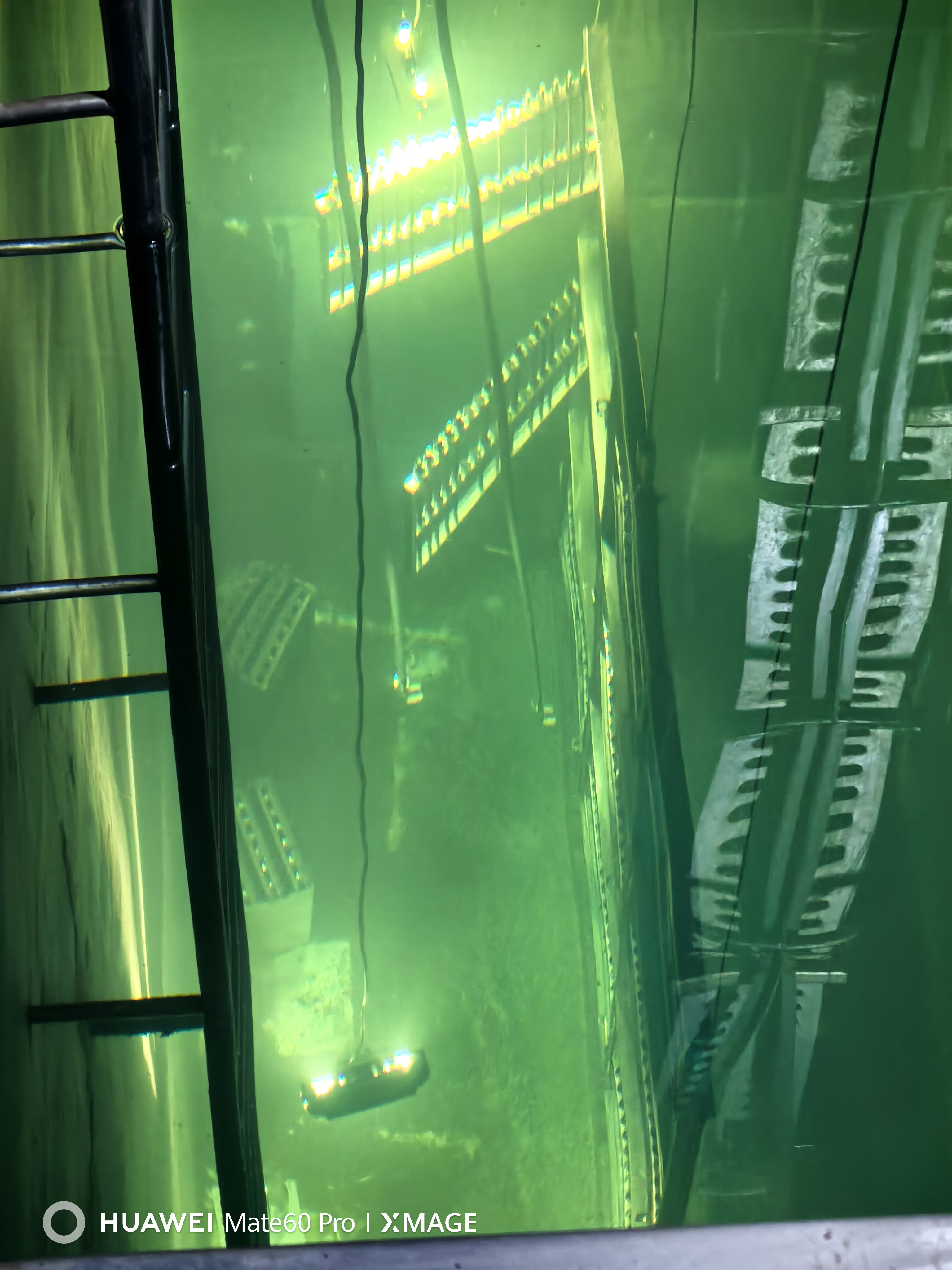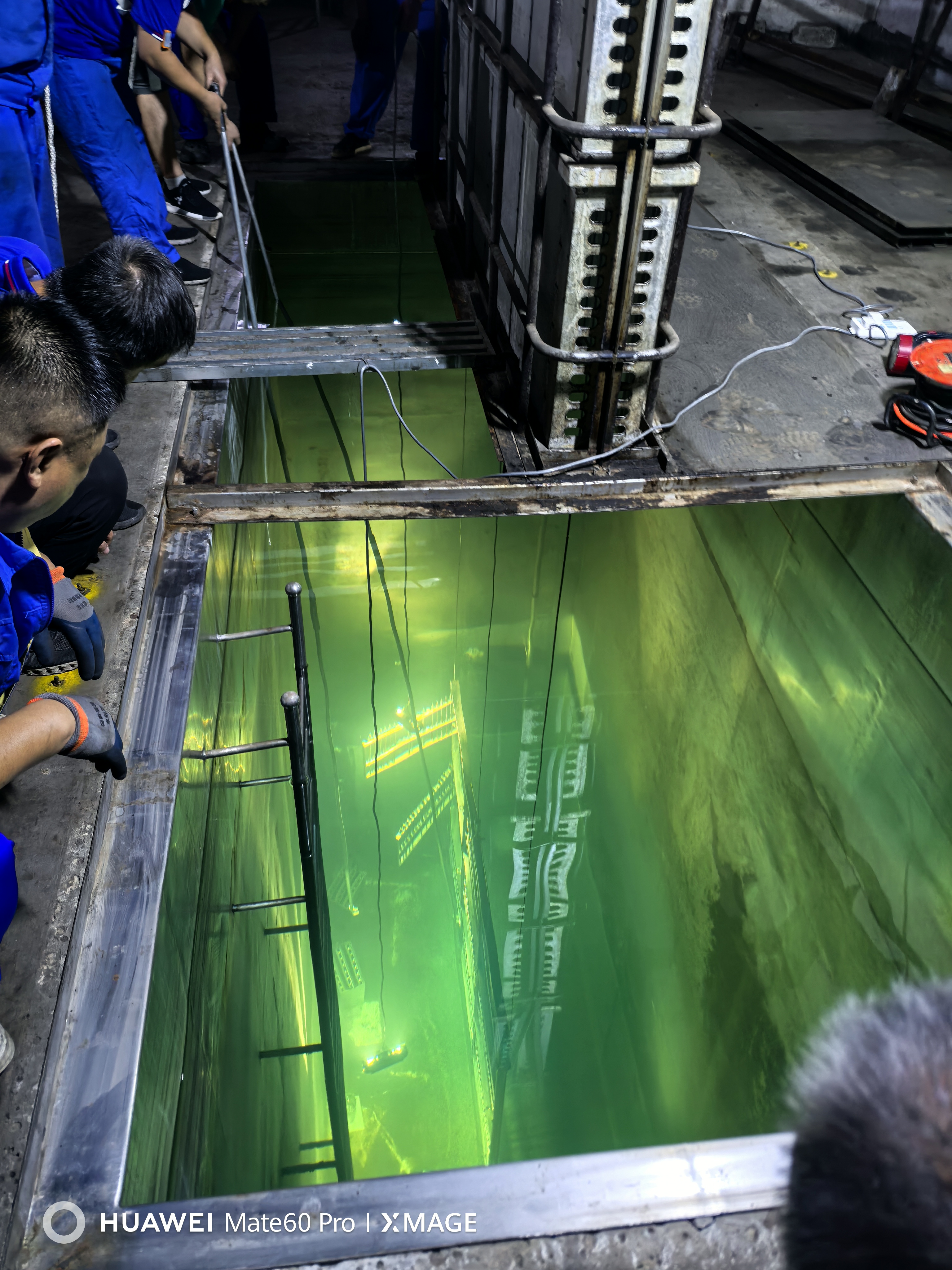 2025年是三批次購入的38枚鈷源的法定退役窗口,全體員工及支持人員,齊心協(xié)力,完成了即將退役的38枚源棒的下架和10枚新購源棒的上架工作,過程安全,結(jié)果圓滿。同時,對于源板、護(hù)源罩、鋼絲繩等進(jìn)就行了水下攝像掃描,確保每一顆小小螺絲釘,每一股每一絲鋼絲繩無毛刺,無隱患,確保每一道安全連鎖靈敏有效。下午六點(diǎn)順利升源,正常投入生產(chǎn)。華明輻照將繼續(xù)深耕輻照加工領(lǐng)域,拓展新市場,推動企業(yè)高質(zhì)量發(fā)展,迎接更加嚴(yán)峻的挑戰(zhàn)。