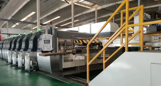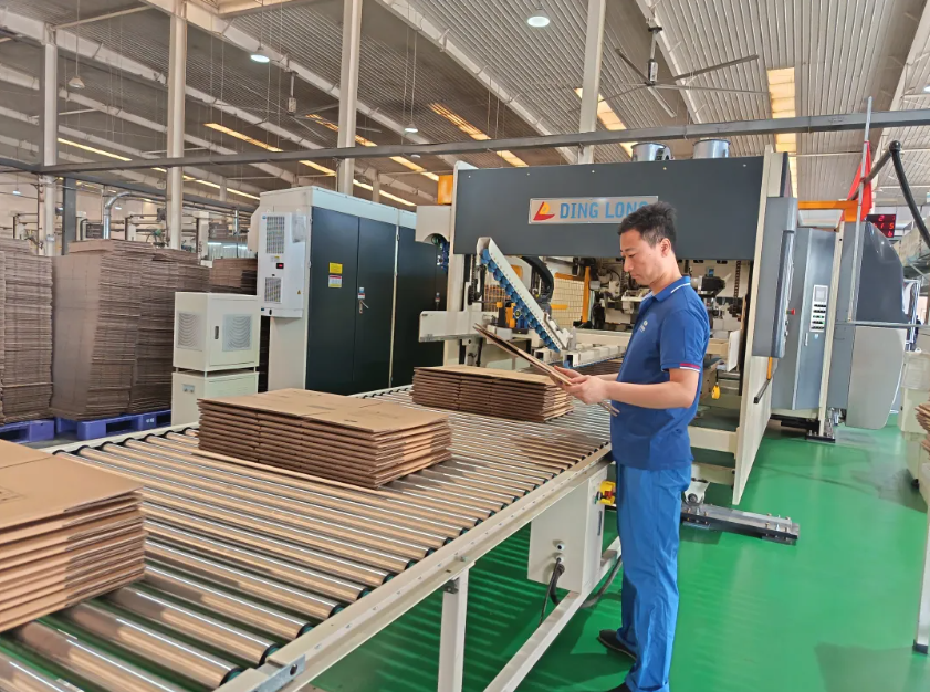 此次投產(chǎn)的智能紙箱印刷成型聯(lián)動(dòng)生產(chǎn)線(xiàn),選用上海鼎龍 “賽利達(dá)” 設(shè)備,是華明集團(tuán)經(jīng)過(guò)充分市場(chǎng)調(diào)研后作出的重要決策,成為華北地區(qū)首臺(tái)套智能紙箱印刷成型聯(lián)動(dòng)生產(chǎn)線(xiàn)。該生產(chǎn)線(xiàn)集成多項(xiàng)行業(yè)前沿技術(shù),包括全伺服控制、AI 視覺(jué)檢測(cè)、物聯(lián)網(wǎng)數(shù)據(jù)追溯、全自動(dòng)模切成型等,實(shí)現(xiàn)了從送紙、壓線(xiàn)、模切、成型、打包到碼垛的全流程自動(dòng)化,各環(huán)節(jié)通過(guò)高精度數(shù)字接口協(xié)同運(yùn)行。