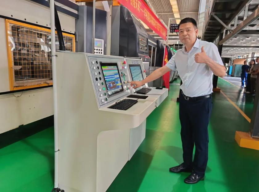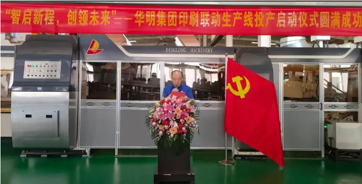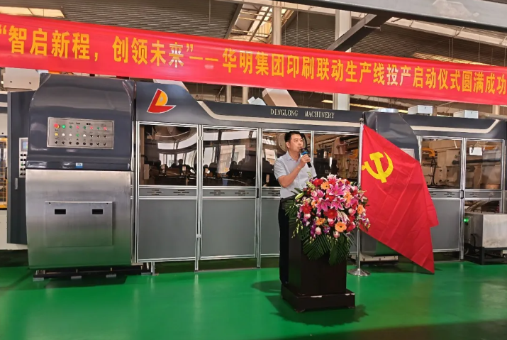 儀式現(xiàn)場(chǎng),在全體人員的見(jiàn)證下,佟功強(qiáng)總經(jīng)理在機(jī)器前按下啟動(dòng)按鈕,為紙箱印刷聯(lián)動(dòng)生產(chǎn)線(xiàn)正式開(kāi)機(jī),標(biāo)志著華明集團(tuán)正式邁入 “智能裝備驅(qū)動(dòng)、數(shù)字賦能生產(chǎn)” 的新階段。