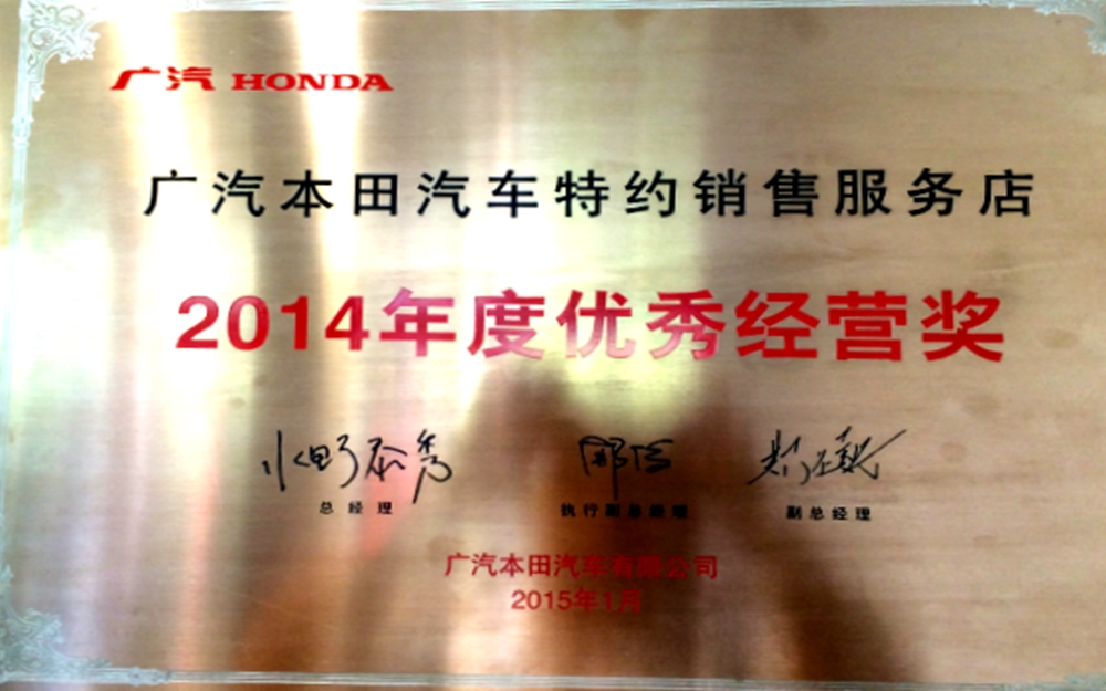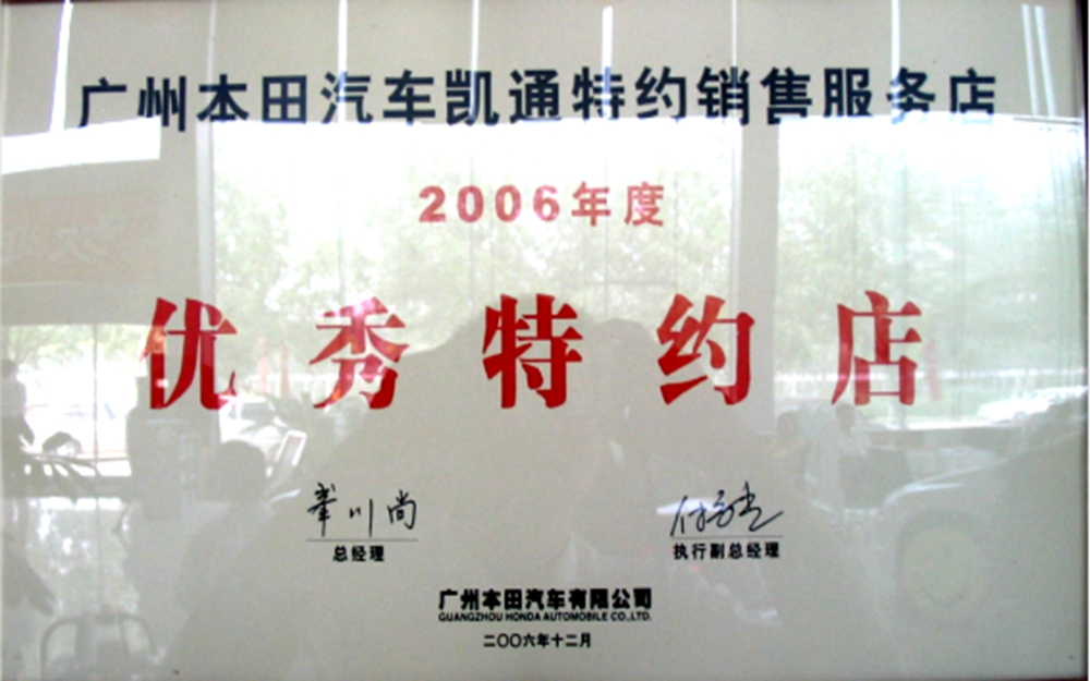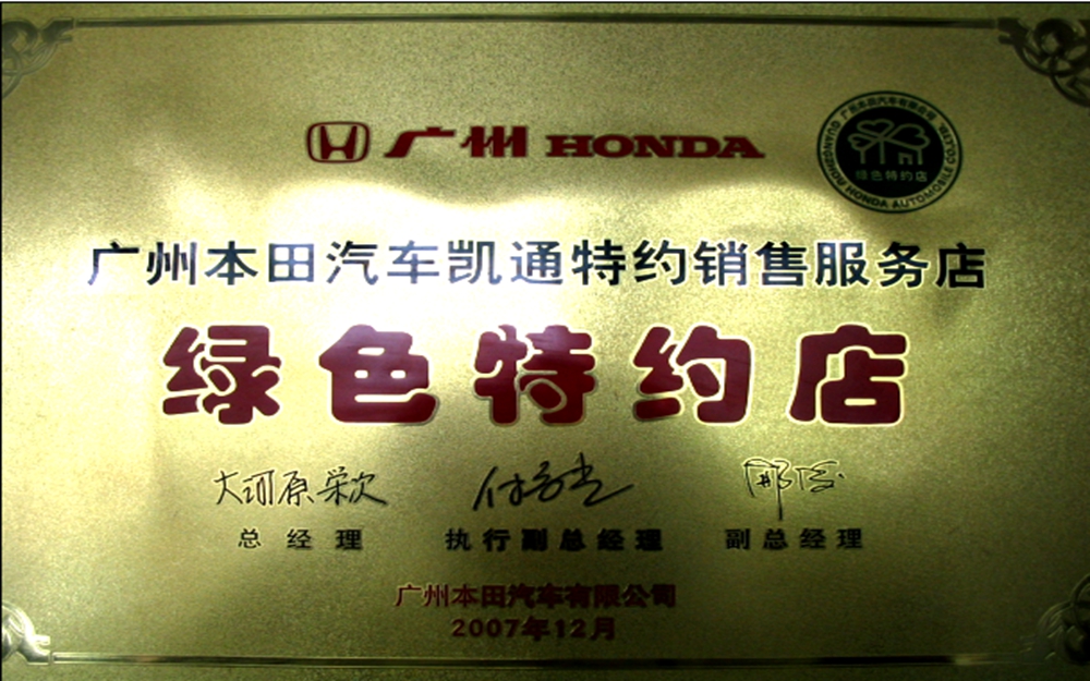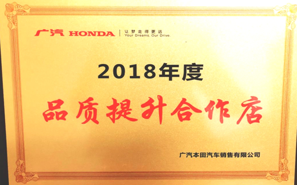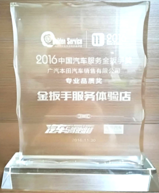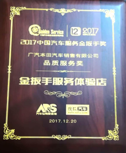獲得廣州本田汽車優(yōu)秀服務(wù)店稱號。